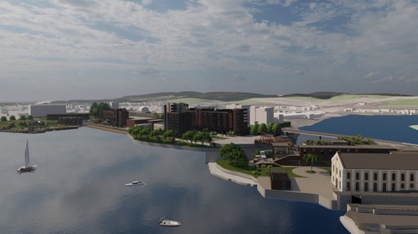 Norges første bydel utelukkende for utleie ca. 250 leiligheter med næring i 1 etasjene.
